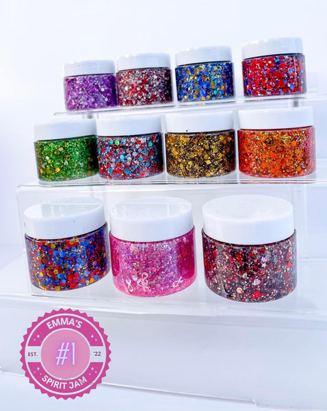 Try out Emmas's Spirit Jams! Iridescent, shimmery, and carefully handmade with love, these face hair & body sparkles will help you kick your style up a notch. So shine bright and let your inner spirit out! Take your bling and add a sprinkle of magical flava!