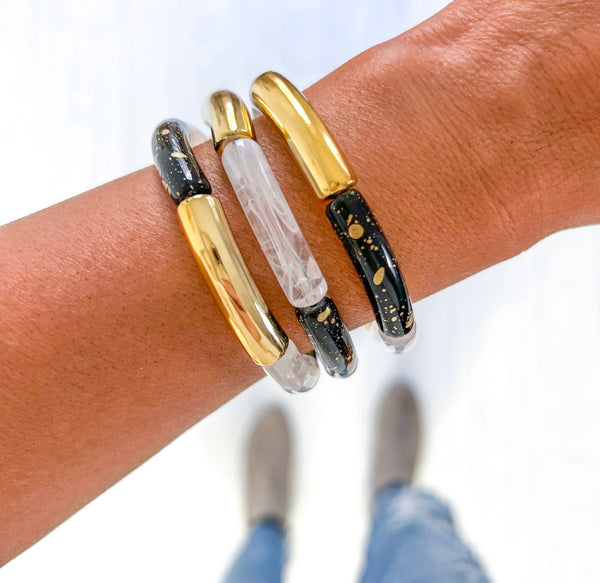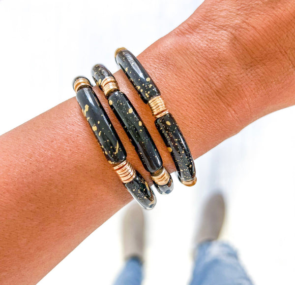 Our Black & Gold Bracelets truly stand out with their boujee yet comfortable design. They feature a black and gold combination with stylish and trendy accents, perfect for any occasion, making them perfect to show your team spirit.